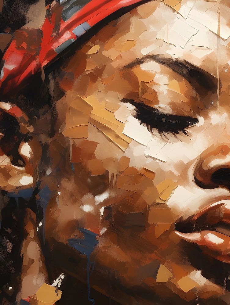 Resilient Dream is a portrait of calm in chaos, where every stroke and splash of colour builds the story of a soul at rest, but alive with the vivid echoes of her thoughts and dreams. Abstract elements and expressive brushstrokes dance across the canvas, indicating a rich inner life bubbling beneath the surface.