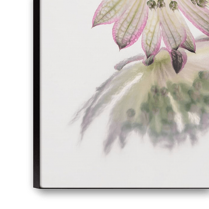 Buy this flower art Rest: Zeeland Knot with picturesque reflection in soft pink and green by Marjolijn van den Berg on canvas, ArtFrame, poster and wallpaper, printed on demand in high quality.