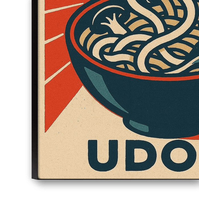 Celebrate the timeless flavors of Japan with this Udon poster in striking retro style. Udon noodles, known for their thick texture and comforting taste, take center stage in this dynamic design. Illustrated with chopsticks lifting steaming noodles against a radiant rising sun backdrop, the poster captures both tradition and modern design aesthetics. The bold colors of red, beige, and navy create an authentic vintage vibe, while the screenprint-style texture adds depth and nostalgic charm. This wall art is perfect for kitchens, dining rooms, restaurants, or creative studios – anywhere that could use a touch of Japanese culture and warmth. More than just decoration, it symbolizes comfort food, cozy evenings, and Japan’s rich culinary heritage. Ideal for food lovers, travel enthusiasts, and collectors of Japanese-themed art, this piece makes a thoughtful gift or a standout addition to your own collection. Enhance your space with bold design and authentic Japanese flair.