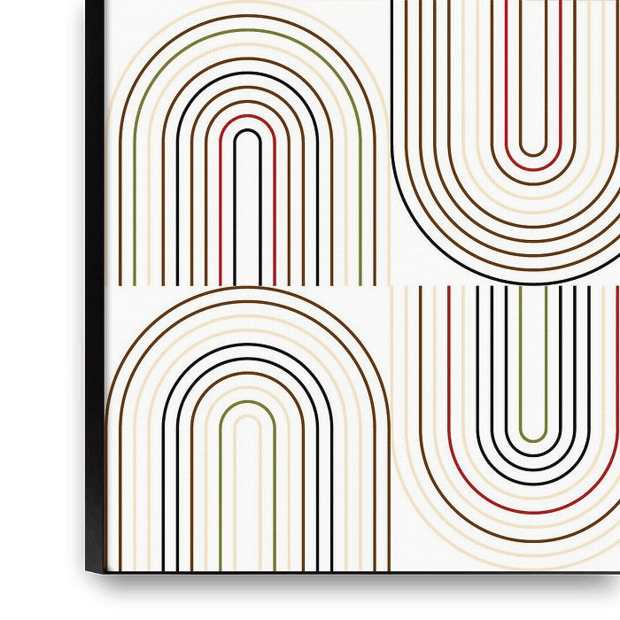 About ‘Retro industrial geometry with lines in pastel colors nr. 9 in green, beige, red, brown, black’ by Dina Dankers