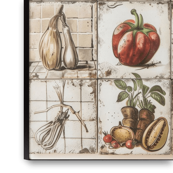 About ‘Retro white tiles with food prints as illustrations’ by Digitale Schilderijen