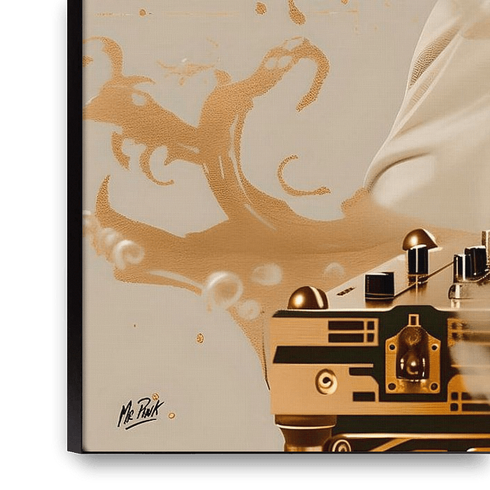 Buy this digital art artwork Retronic - Old School DJ by Mr Pink (Nicolas PONSY) as a reproduction on canvas, ArtFrame, poster and wallpaper, printed on demand in high quality.