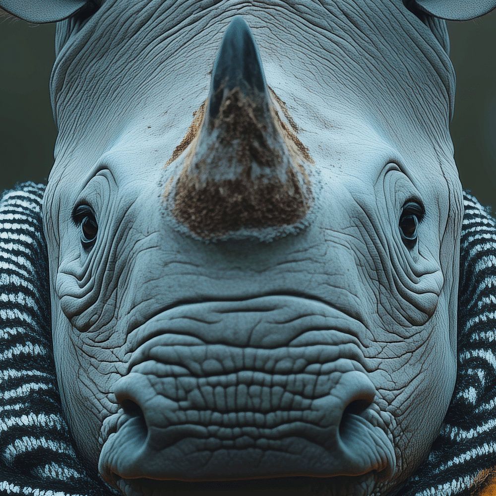 Buy this digital art artwork Rhinoceros dressed for winter by Ton Kuijpers as a reproduction on canvas, ArtFrame, poster and wallpaper, printed on demand in high quality.