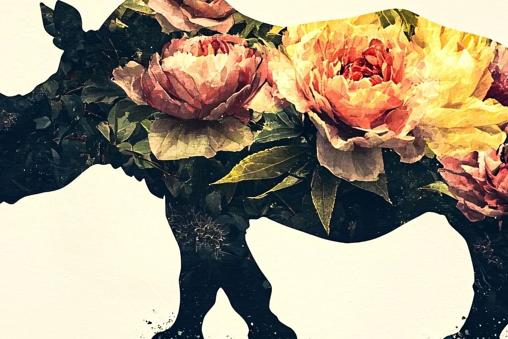 Add a unique and artistic touch to your interior with this beautiful design. A silhouette of a rhinoceros filled with vibrant flowers combines the power of nature with the beauty of flora. Ideal for animal and art lovers, this design brings an eclectic and surreal atmosphere to any space. Perfect for the living room, hall or office, this artwork offers a combination of style and elegance that will transform your space. The contrast of the dark silhouette with the colourful flowers makes it a real eye-catcher.