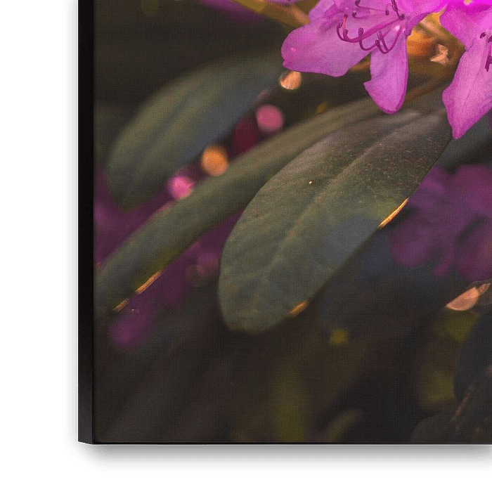 This enchanting photograph captures a close-up of a beautiful Rhododendron flower, while the background is awash with the warm colours of a breathtaking sunrise. The Rhododendron flower takes centre stage in the image, with its lush petals opening up like a living work of art. The flower's pink hues harmonise perfectly with the glowing background, illuminated by the first rays of the rising sun.