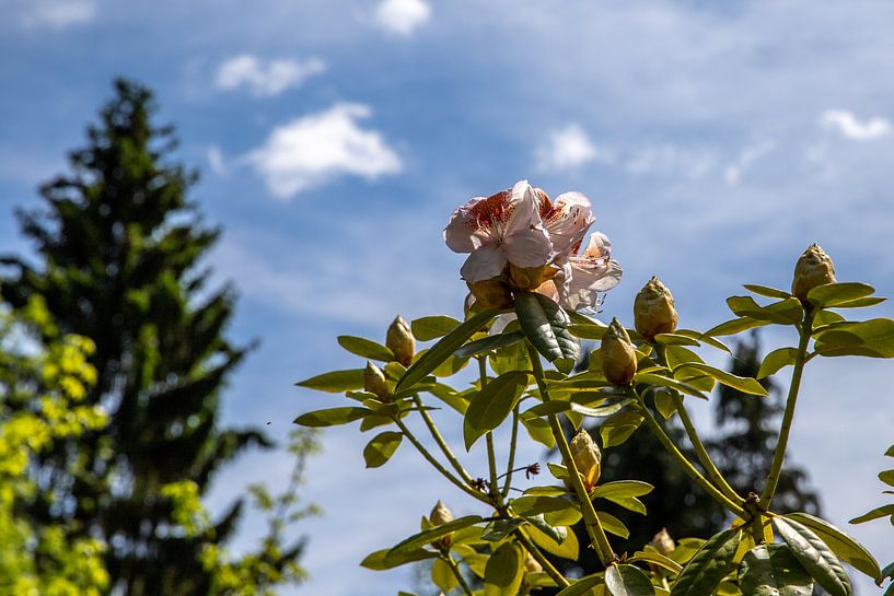 Rhododendron flower in front of blue sky by Alexander Wolff