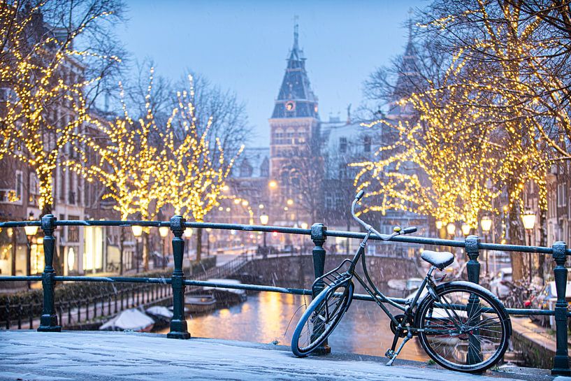 Buy the photo Rijksmuseum Spiegelgracht Amsterdam Snow by Jasper van Staveren on canvas, ArtFrame, poster and wallpaper, printed on demand in high quality.