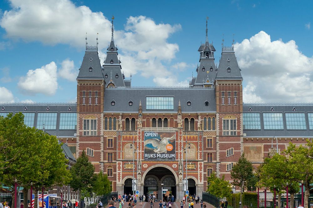 Rijksmuseum at the Museumplein in Amsterdam on a summer's day