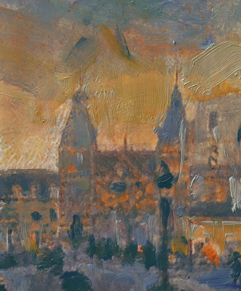 View of the Rijksmuseum. Original is oil on paper. A wonderful work for anyone who loves Amsterdam.