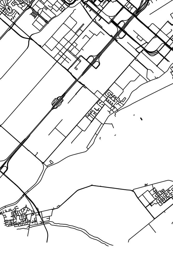 Black and white map, street map or street plan of Rijsenhout. Rijsenhout is located in the municipality of Haarlemmermeer, province of North Holland. The city map includes all public roads in Rijsenhout. Furthermore, the map is provided with the coordinates of the center of Rijsenhout.