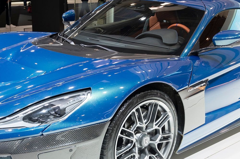 Rimac Nevera full electric hypercar at a motor show. The Rimac Nevera is a high-performance electric sports car produced by the Croatian automaker Rimac Automobili. The Nevera is powered by a series of electric motors that generate a total of 1,914 horsepower and 1,696 pound-feet of torque, enabling the vehicle to go from 0 to 60 mph in less than 2 seconds. The Nevera is also equipped with advanced technologies such as torque vectoring, a sophisticated suspension system, and a state-of-the-art battery system, which provides a driving range of up to 340 miles. The vehicle is considered one of the fastest and most technologically advanced electric sports cars in the world.