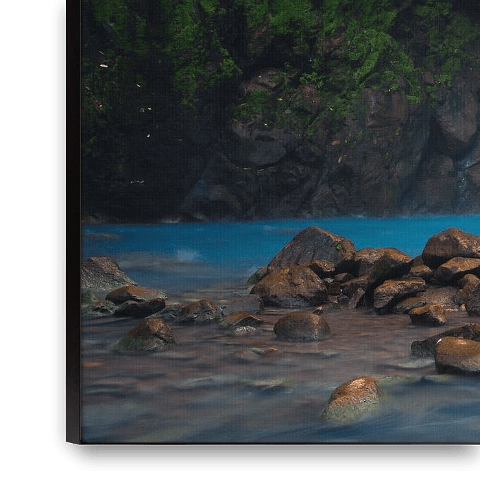 The Rio Celeste waterfall in Tenório national park, a volcanic canyon in Costa Rica. The waterfall is famous for the sulphur-rich bright blue water flowing through it.