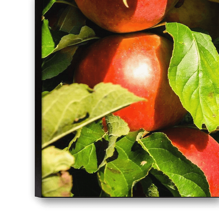 Ripe dessert apples Jonah Gold with green leaves on tree