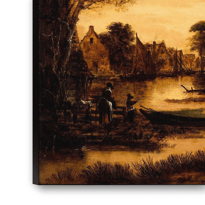 Buy River landscape, Aert van der Neer as a reproduction on canvas, ArtFrame, poster and wallpaper, printed on demand in high quality.