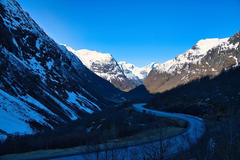 Buy this landscape artwork Road leading through the Norwegian high mountains by Martin Köbsch on canvas, ArtFrame, poster and wallpaper, printed on demand in high quality.