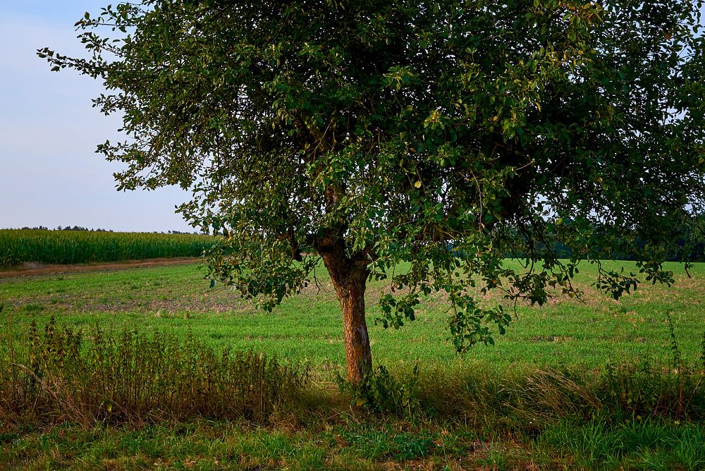 Tree in an outlying area, along the road, between field and road. Such an inconspicuous tree that becomes special when you think about it for a moment. Straight more leaves and branches than on the left, hanging against the wind. Stands inconspicuous for hours, days and years, until the tree is gone. Then we miss the face of the tree, the shadow and the familiar image.