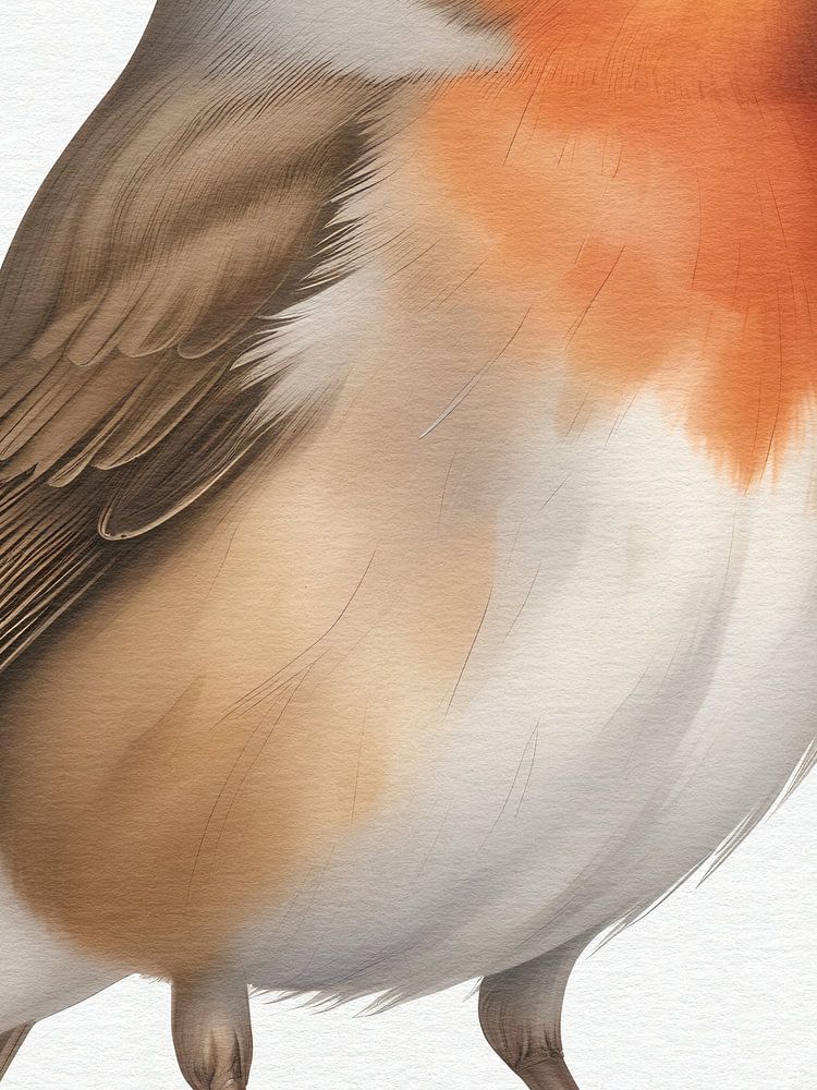 Portrait of a robin on white background with paper texture.