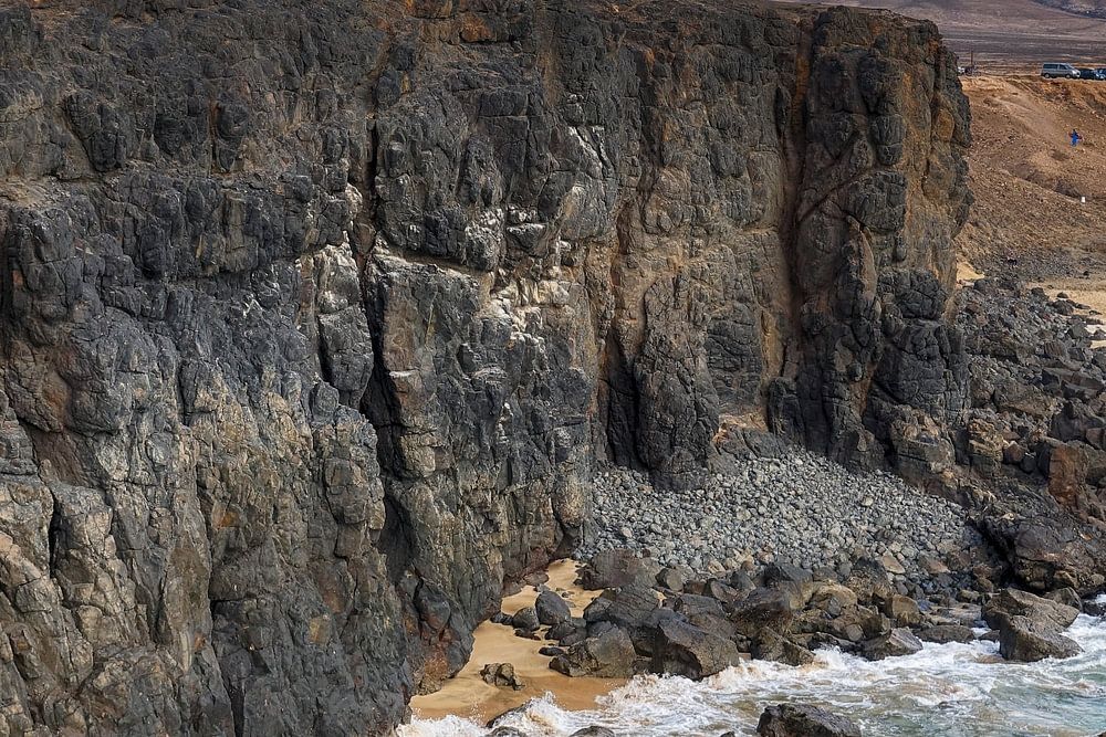 The mighty cliff "Roca de la Mar" borders the beach Piedra Playa (Playa del Castillo) near El Cotillo.