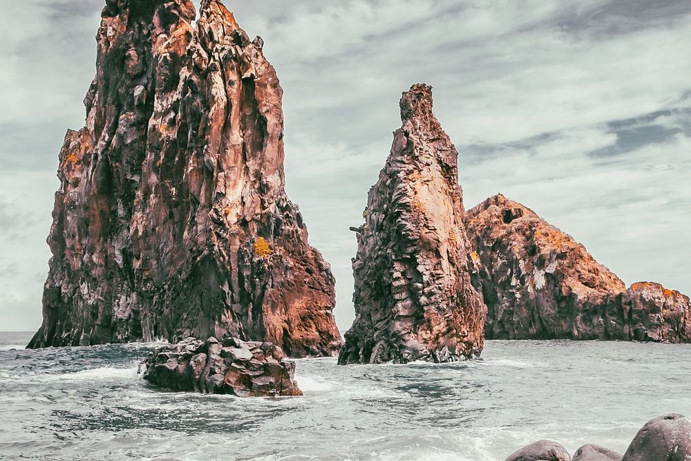 The coastal village of Ribeira da Janela, on the north-western side of Madeira, is home to one of the island's most iconic rock formations: Ilheus da Ribeira da Janela, consisting of Ilheus da Rib, Ilheus da Janela and its little brother Ilheuzinho. The rocks were formed by lava and stand a few metres from rocky shores where you can therefore easily admire them from the pebble beach or the higher viewpoint.