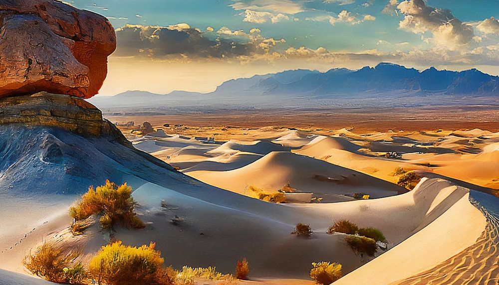 Buy this landscape artwork Rocks with sand in the desert by Mustafa Kurnaz on canvas, ArtFrame, poster and wallpaper, printed on demand in high quality.