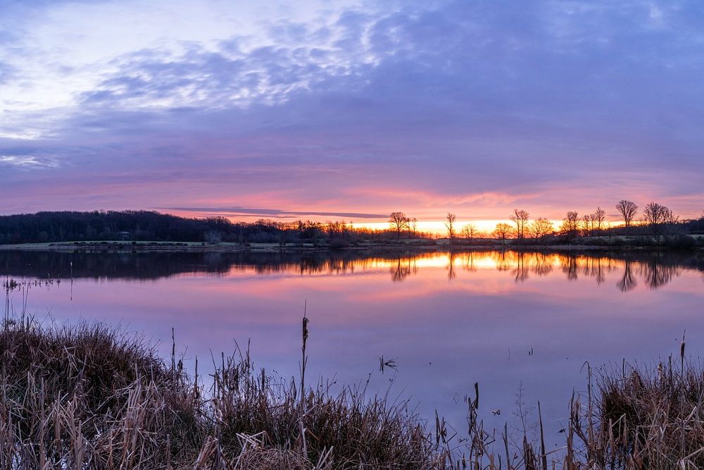 Sunrise at the Rodder Maar in the Brohl Valley, Eastern Eifel, Rhineland-Palatinate, Germany