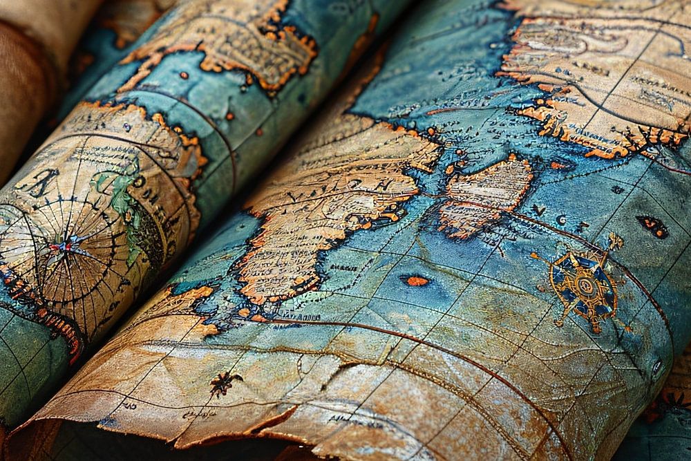 Create an adventurous atmosphere in your office with this rolled-up world map on a wooden table. Perfect for dreamers and travellers!