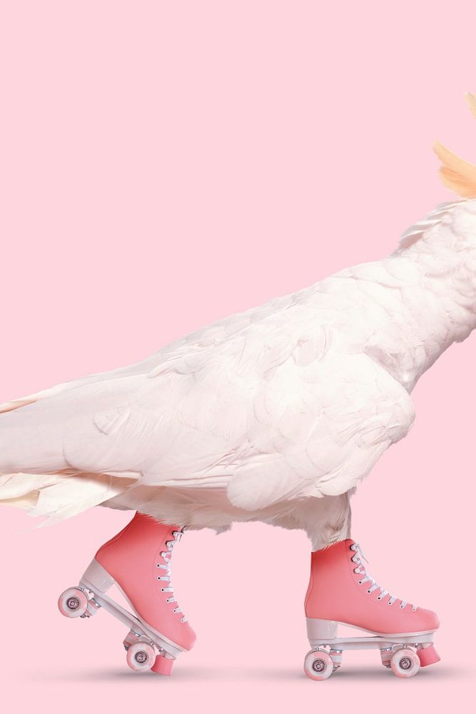 Buy this bird art Rollerskating Cockatoo by Jonas Loose on canvas, ArtFrame, poster and wallpaper, printed on demand in high quality.