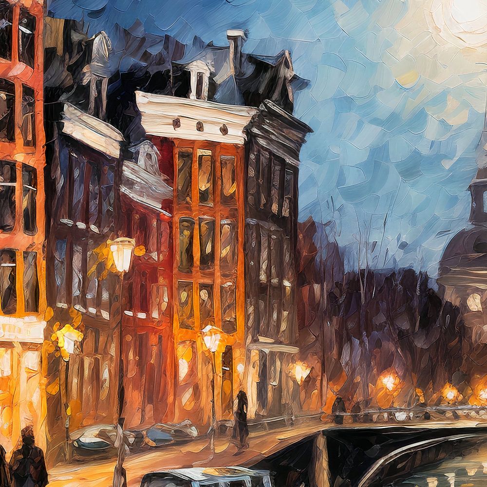 Buy this painting Romantic Amsterdam by ARTemberaubend as a reproduction on canvas, ArtFrame, poster and wallpaper, printed on demand in high quality.