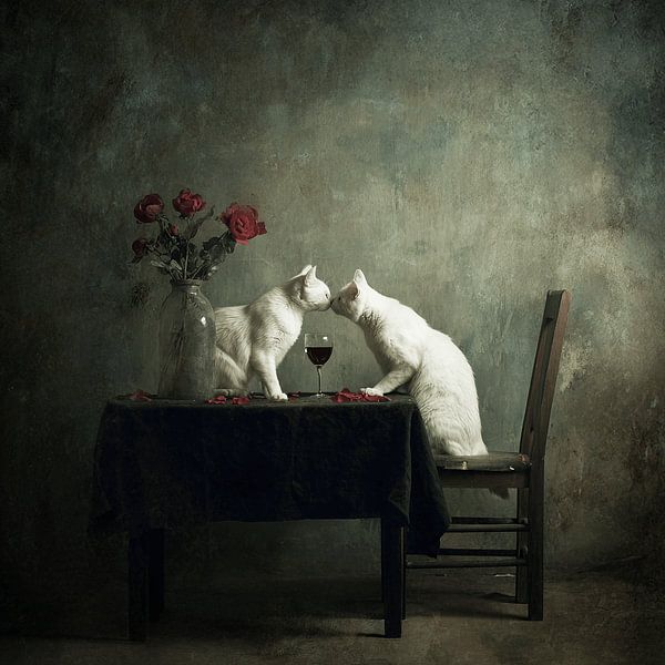 Buy this still life Romantic Cat Dinner by Karina Brouwer on canvas, ArtFrame, poster and wallpaper, printed on demand in high quality