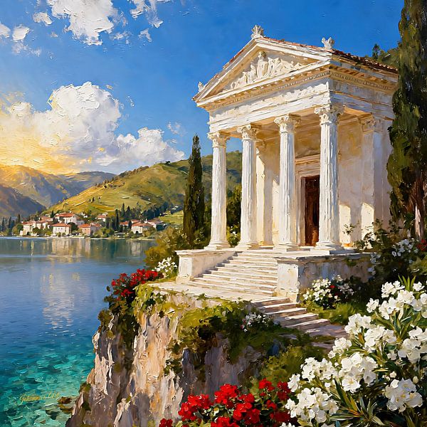 Step into a world of ancient elegance and Mediterranean charm with our exquisite collection of Romantic Greek Mansions artwork.