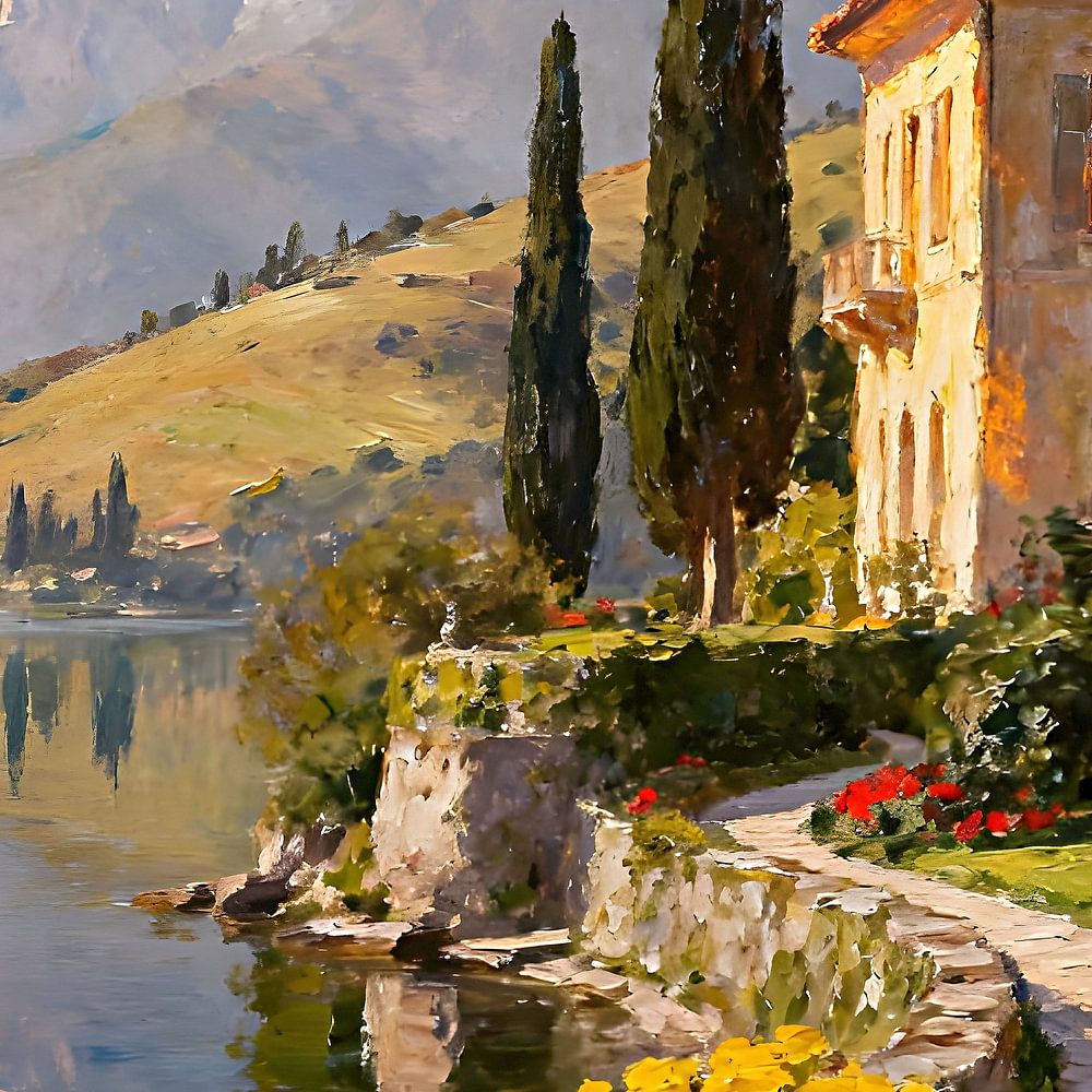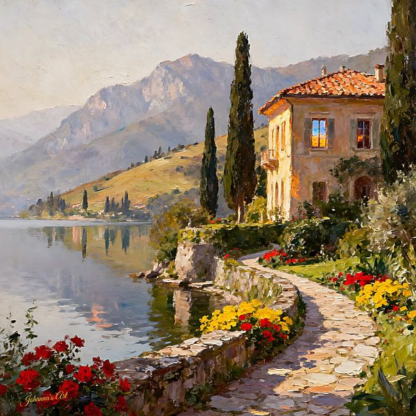 Discover the enchanting beauty of Italy with this exquisite Romantic Italian Mansion artwork, exclusively crafted by Johanna's Art Creations. This stunning piece captures the essence of a classic Italian villa, bathed in warm sunlight and adorned with vibrant flowers. The intricate details,…