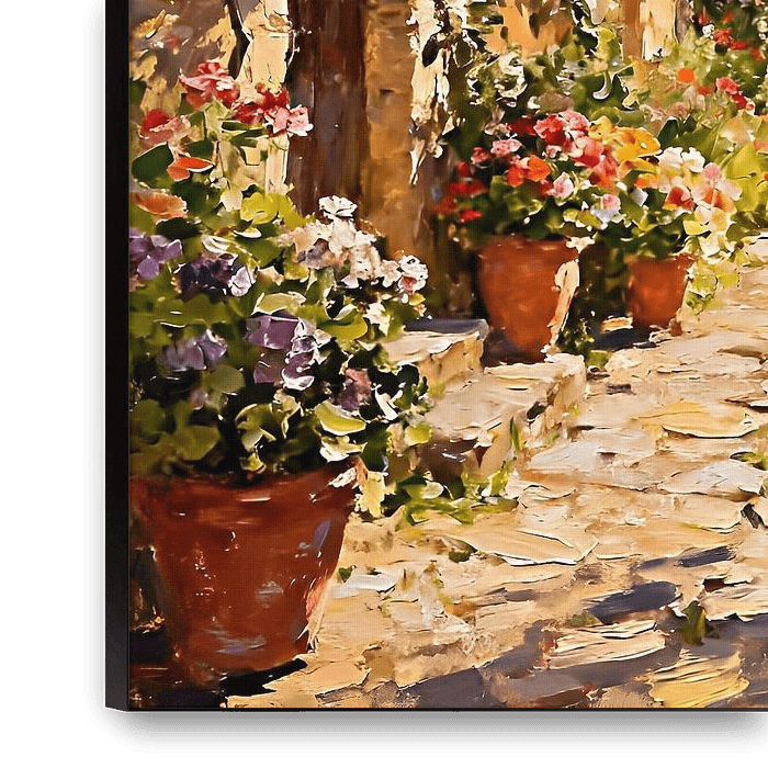 Step into the sunlit charm of an Italian village with Italian Afternoon Glow. A cobblestone path winds gracefully through the heart of the village, lined with ancient ochre-colored buildings crowned with terracotta roofs. Vibrant green shutters frame windows overflowing with cascading flowers, while climbing vines and elegant cypress…