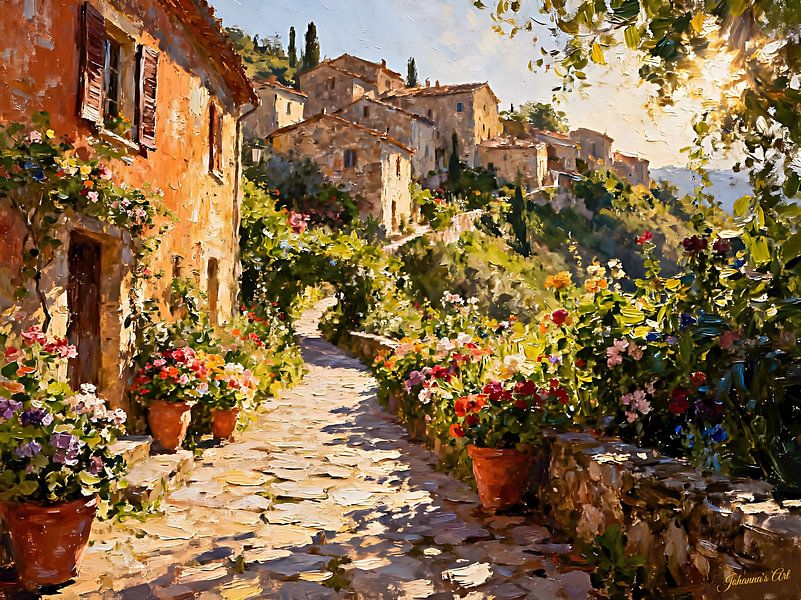 Romantic Village – Italian Afternoon Glow by Johannas Art Creations