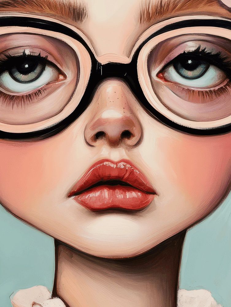 "Romantic fashionista", a special illustration of a girl with big glasses and flowers in her hair. pastel colours. Choose your own size and material with this work and make it your own.