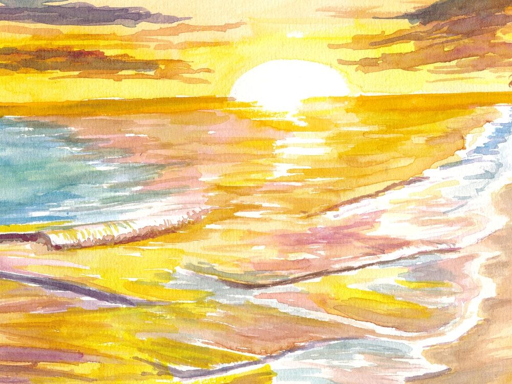 About "Romantic island sunset with waves palm trees beach"
