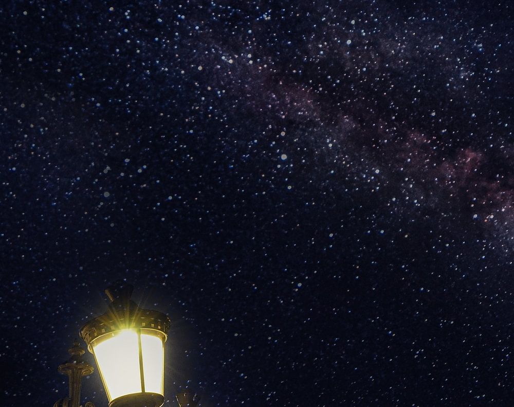 Classic lanterns by moonlight. In the background a starry sky of the Milky Way.