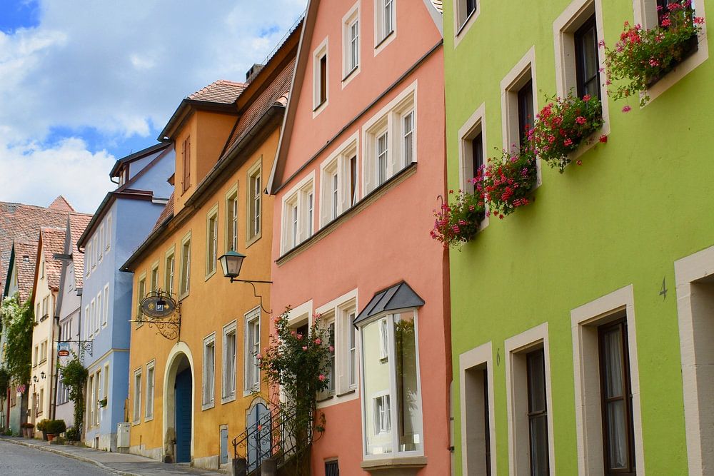 een erg kleurrijke straat in Rothenburg in Duitsland