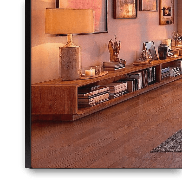 Your chosen art on canvas, stretched in an aluminum frame. Quick and easy to change for a fresh look and exactly as you want it.