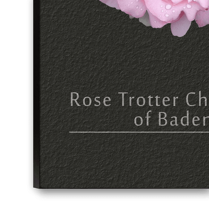 Pink blossom of a rose Trotter Champion of Baden on a black slate slab
