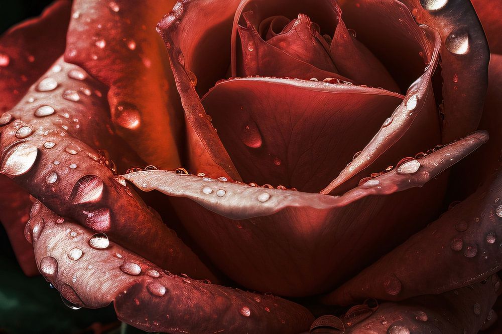 Buy this landscape artwork Rose with dewdrops in close-up by Art & Soul Creations on canvas, ArtFrame, poster and wallpaper, printed on demand in high quality.