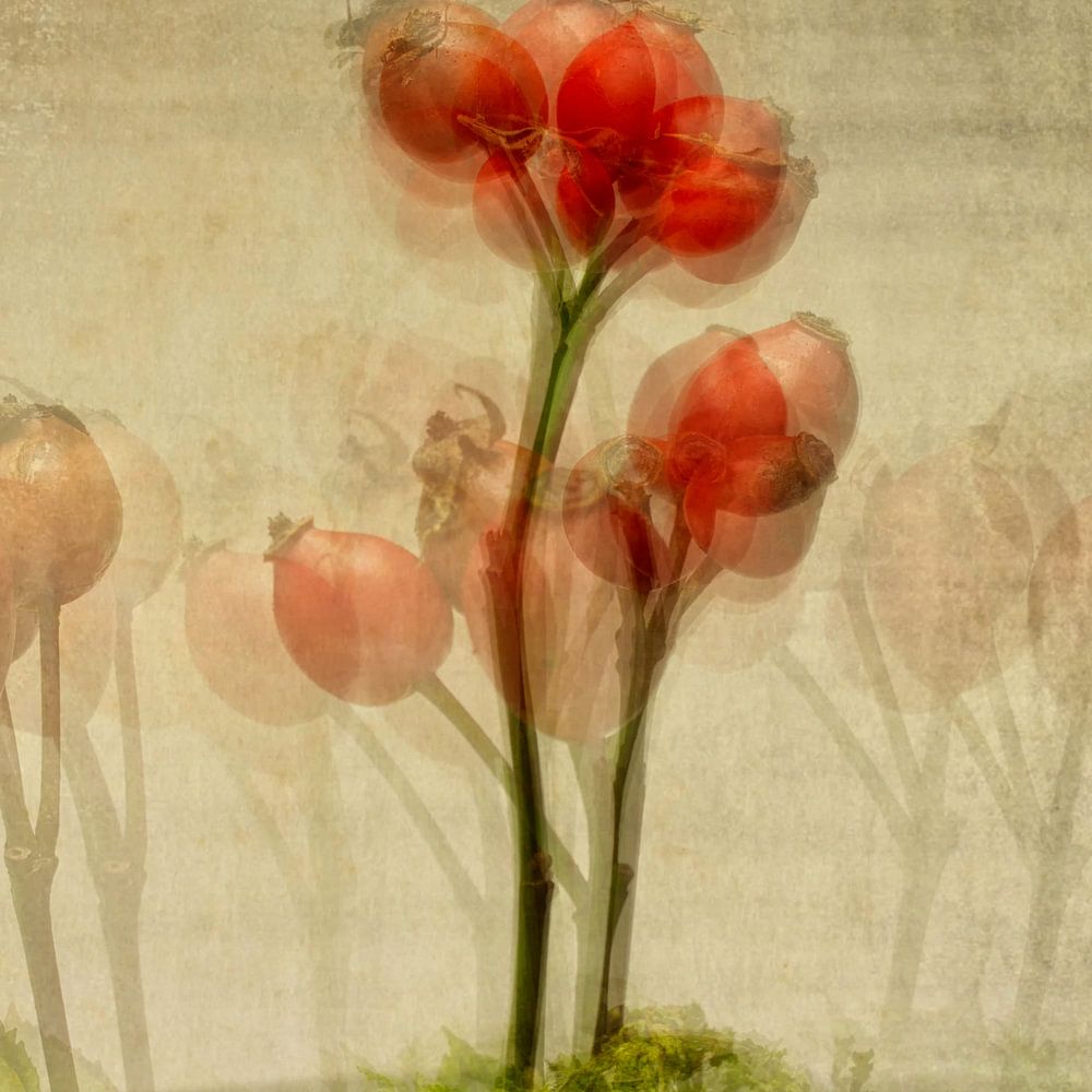 Buy this digital art artwork RosehipFamily by Anke Brehm as a reproduction on canvas, ArtFrame, poster and wallpaper, printed on demand in high quality.