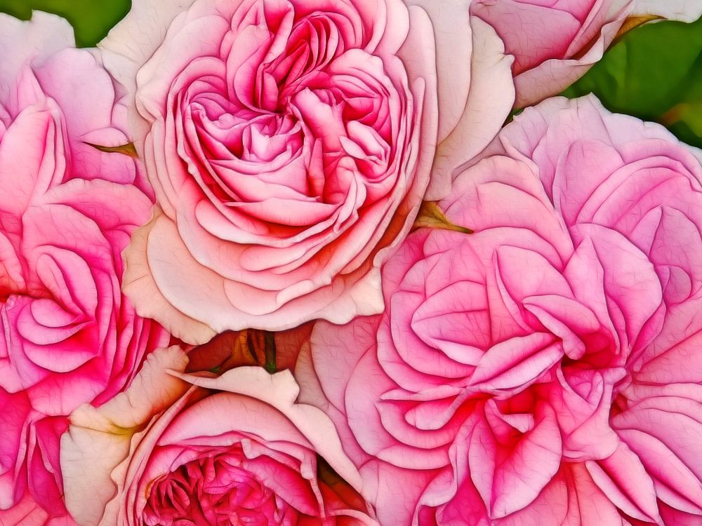 A beautiful bunch of pink roses. Lush, romantic, gentle, feminine, fragrant and very well suited to all kinds of pastel colours. Very lightly crafted to emphasize certain accents.