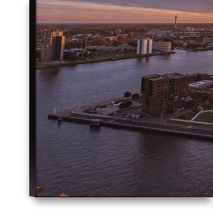 Buy this of Rotterdam Rotterdam cityscape at sunset from the Euromast by Gea Gaetani d'Aragona on canvas, ArtFrame, poster and wallpaper, printed on demand in high quality.