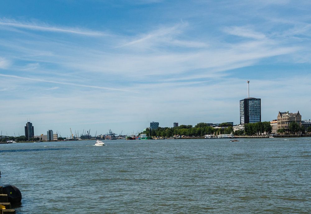 kade langs het water in rotterdam vanaf de erasmusbrug