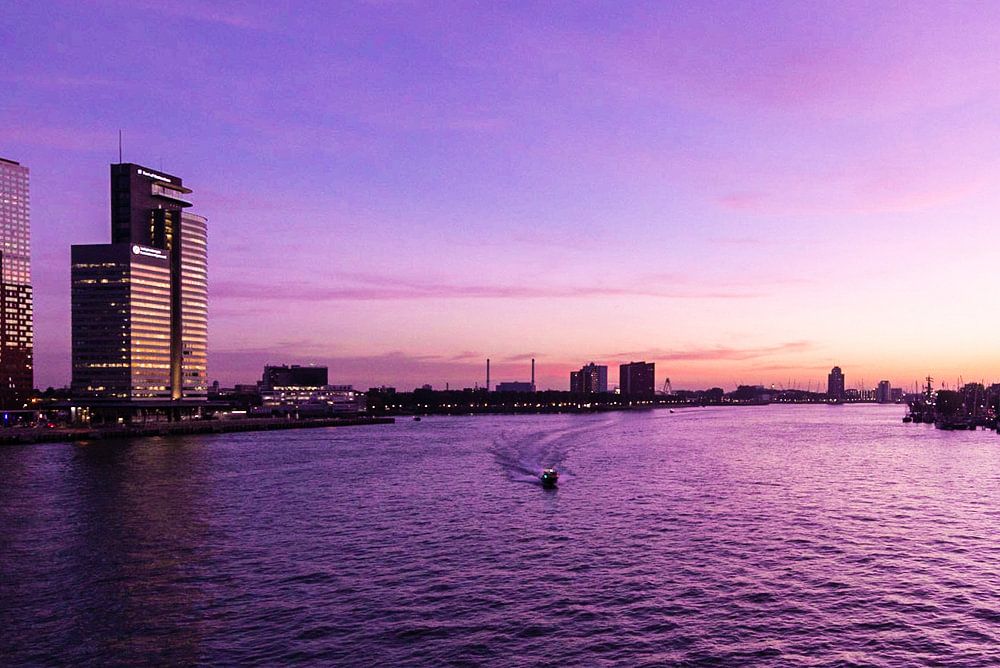 View from the beautiful Erasmus Bridge in Rotterdam over the harbour area.