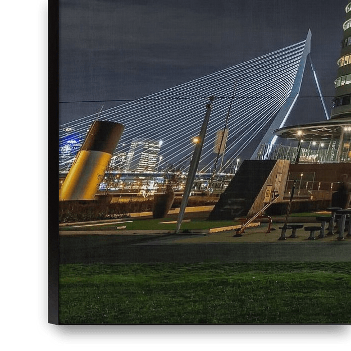 The Kop van Zuid in Rotterdam with in the picture: the Erasmus Bridge, Hotel New York, the World Port Center and the Montevideo tower.