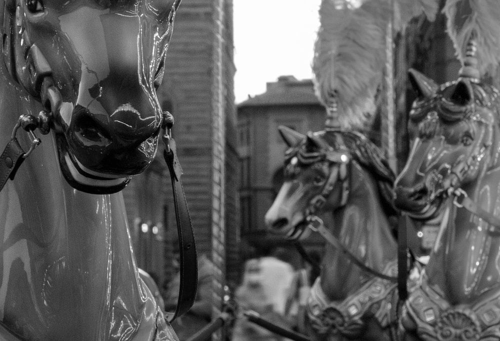 The square is lined with terraces of chic coffee houses, but children only see the merry carousel that spins around day in day out on the spot where, long ago in Roman times, the Florence forum was located.