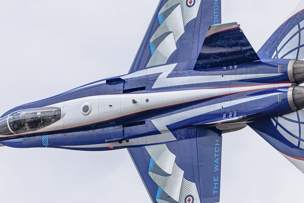 The McDonnell Douglas CF-18 Hornet is a Royal Canadian Air Force variant of the US McDonnell Douglas F/A-18 Hornet fighter aircraft. The aircraft pictured is from the Canadian Air Force's CF-18 Solo Display Team. The aircraft was fitted with a colour scheme for the 2018 season to mark the 60th anniversary of the North American Aerospace Defense Command (NORAD). NORAD is the military command in charge of defending North American airspace. Established in 1958 by Canada and the United States, it operates 24/7 to protect both countries.