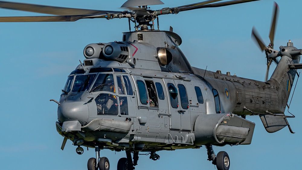 The Eurocopter EC725 Caracal, now the Airbus Helicopters H225M, is a tactical military transport helicopter with a long flight range. It is a further development of the Eurocopter AS532 Cougar. It is a twin-engine helicopter and can carry up to 28 seated military personnel and two crew members, depending on configuration. The helicopter's main tasks are troop transport, evacuation of wounded soldiers and search and rescue operations in combat situations.