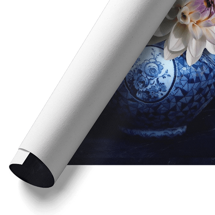 The "Royal Respect II" with the Delft blue vase is a work of art by Sander van Laar. The wall decoration is a continuation of his photographic flower still life "Royal Respect" which was made during the first Lockdown of the Netherlands.